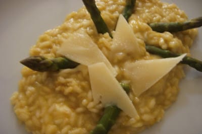The Mantecaura can be done with a creamy goat cheese, that goes very well with asparagus.