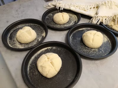 Waiting (without just waiting…) while the pizza dough is rising under the cloth…..