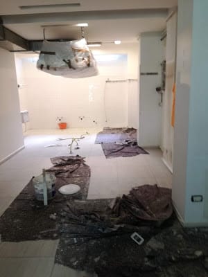 copertura col nylon della cappa e trasporto degli oggetti nell’ufficio di sopra.