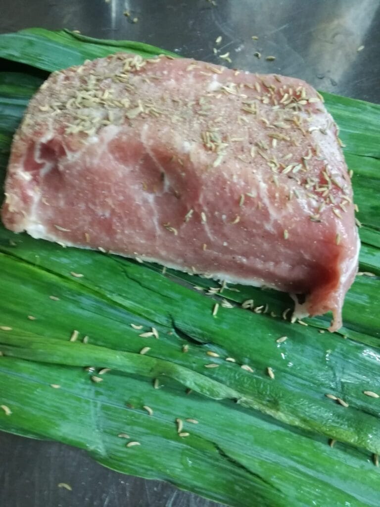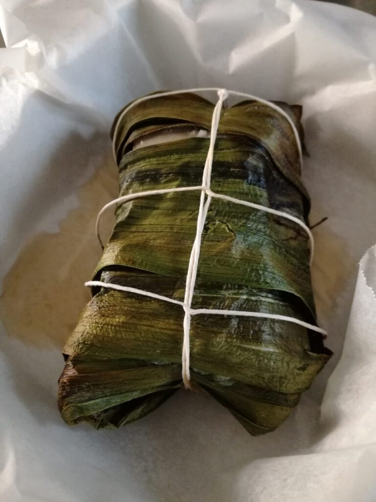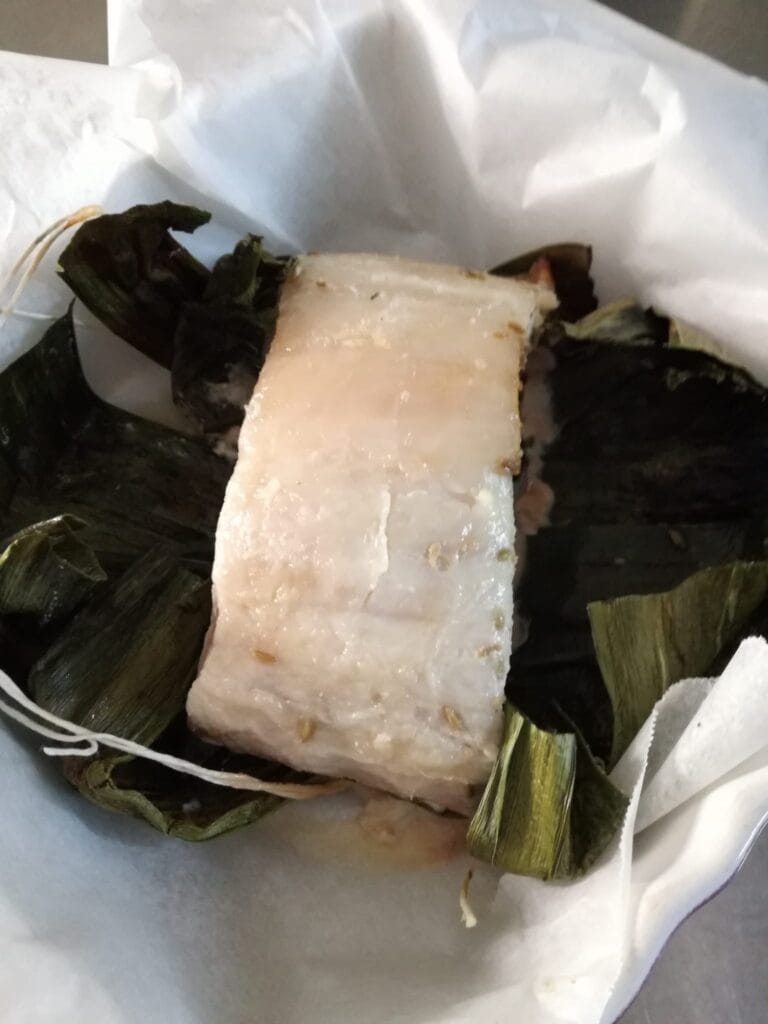 PORK LOIN WRAPPED IN BIG GARLIC LEAVES