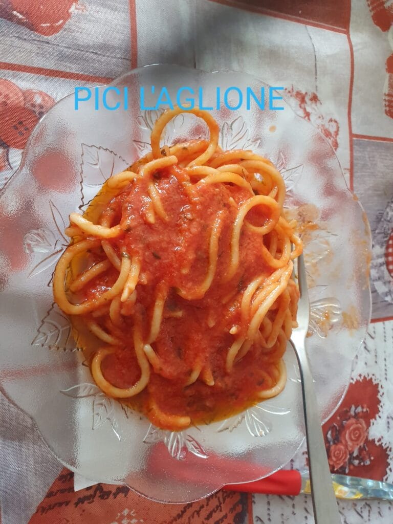 PICI ALL’AGLIONE TRADIZIONALI, TRADIZIONAL PICI WITH BIG GARLIC AND TOMATO SAUCE