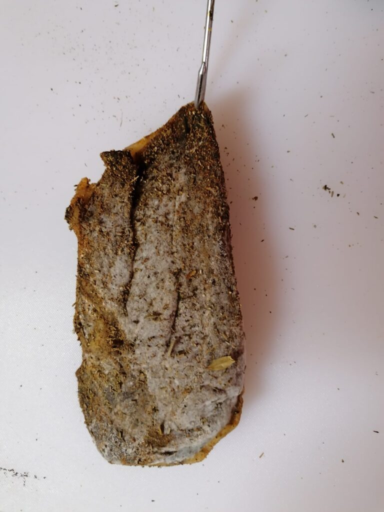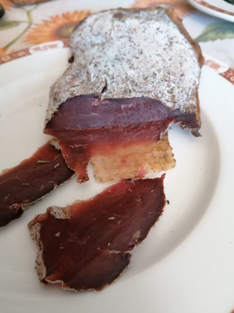 The fourth requirement is the place: it must not only be clean, but fresh and well ventilated. Obviously this place exists in Pellegrino’s country house. The meat remains in the salt for only one day: this is due to the fact that it is small quantities and an extension of the time would cause an unpleasant drying and salting of the meat.