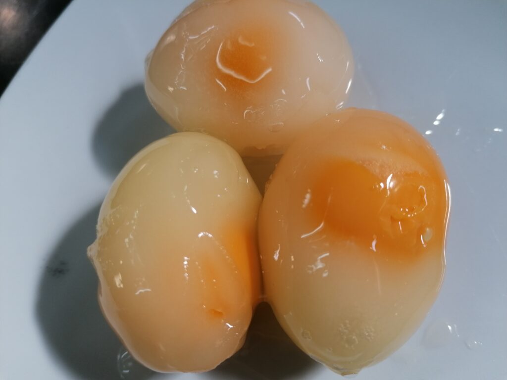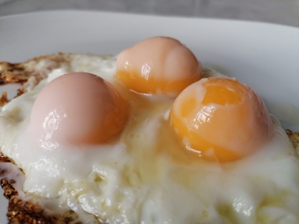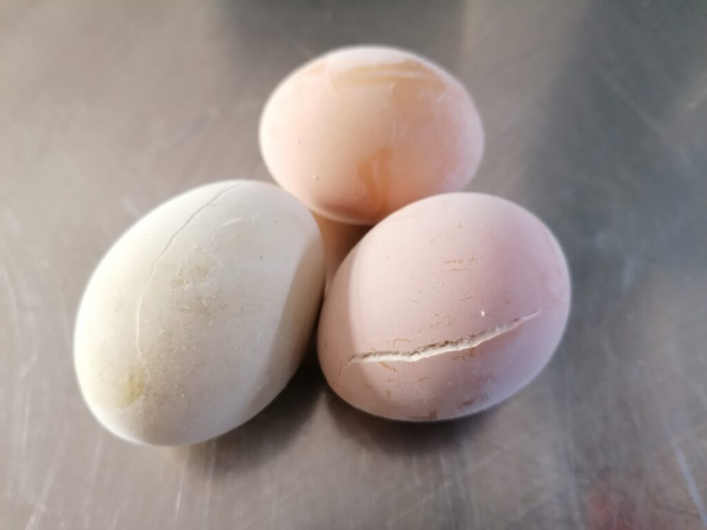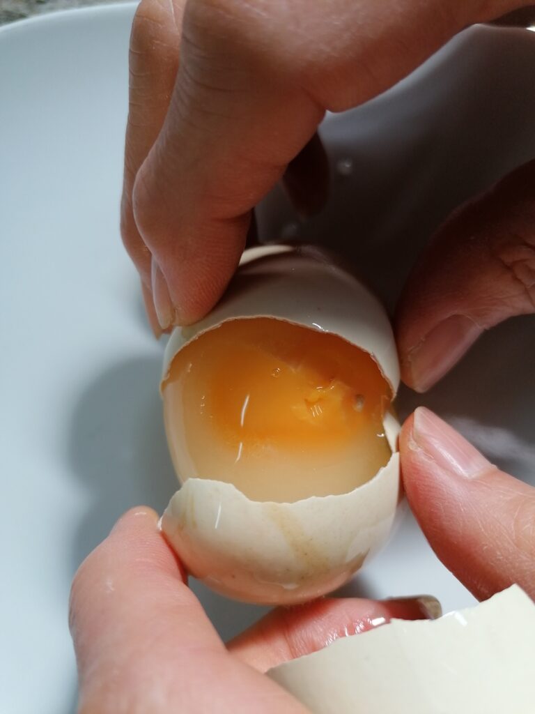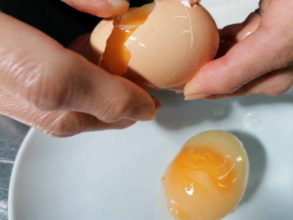 The first surprise is that, once cooked, they did not lose their perfectly spherical shape, that is, the yolk did not flatten, expanding under the force of gravity, but remained of its original shape.