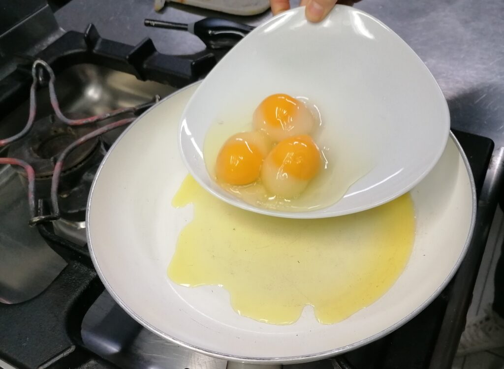 Upon tasting, the second surprise arrived: its consistency had nothing to do with the consistency of the fried egg, where the yolk remains more liquid. Not even with the consistency of the various phases of boiled egg: soft-boiled it is liquid, barzotto is irregularly creamy; in the hard-boiled egg the yolk flakes and takes on an almost sandy consistency.