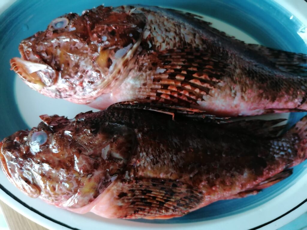 These I have already beautifully cleaned, scaled, gutted. I cut them into thick slices. I also put my head in it, cut in half lengthwise, so that it stays open. The dressing is the simplest and most classic: extra virgin olive oil, parsley, garlic, chilli, half a glass of white wine. I cook then add salt and pureed peeled tomatoes.