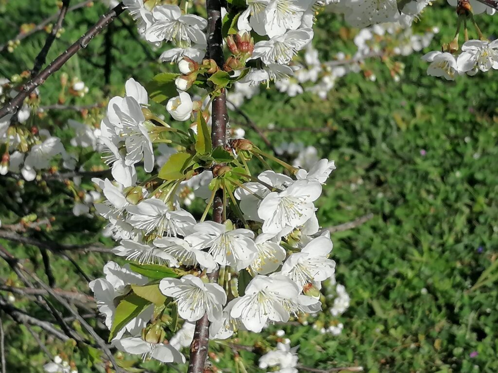 They are sour cherry trees. I have a memory of many years ago, maybe I was 18: we brought branches of ripe sour cherries to Gigi, a very good and famous Barman in his G club. He invented a cocktail for us with them.