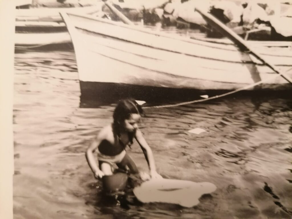 In the photos: The patch of beach where I grew up how it looks today and when I was a child: the girl is me