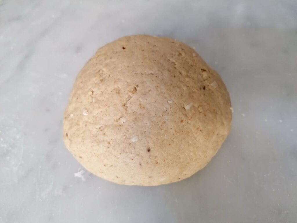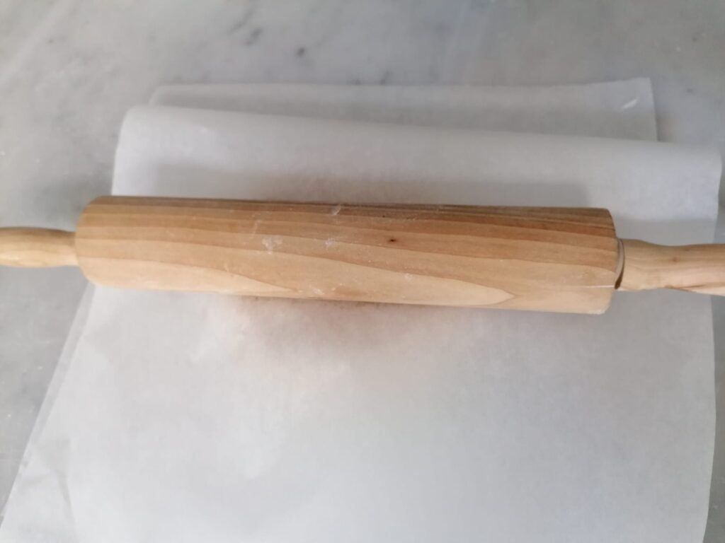 Once you have obtained a smooth dough, place it between two sheets of baking – or perchament – paper and stretch evenly, to a thickness of 1/2 cm ( 1/10 inch).