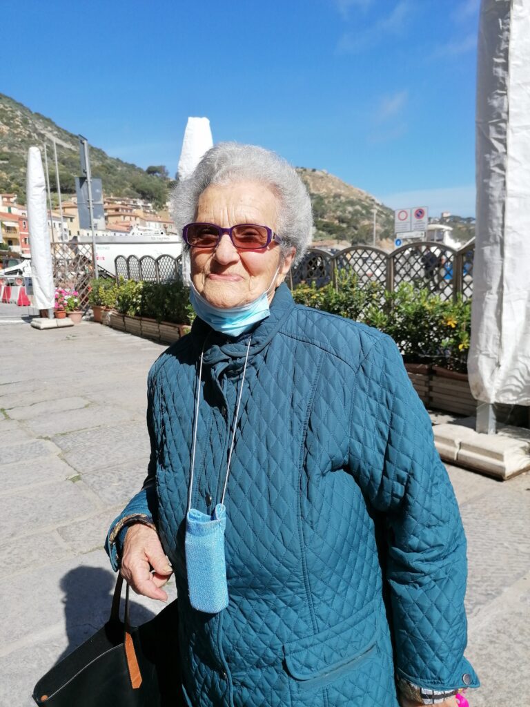 In the summer, every very early morning, shortly after dawn and before the streets are crowded with passers-by, Cecilia goes out. She wears a wide-brimmed straw hat to protect herself from the sun. She goes down to the Porto beach, takes off her sandals and starts walking on the shore. She strengthens the muscles and the circulatory system. She then goes to pray on the pier, where there is a plaque for the victims of the Costa Concordia shipwreck.