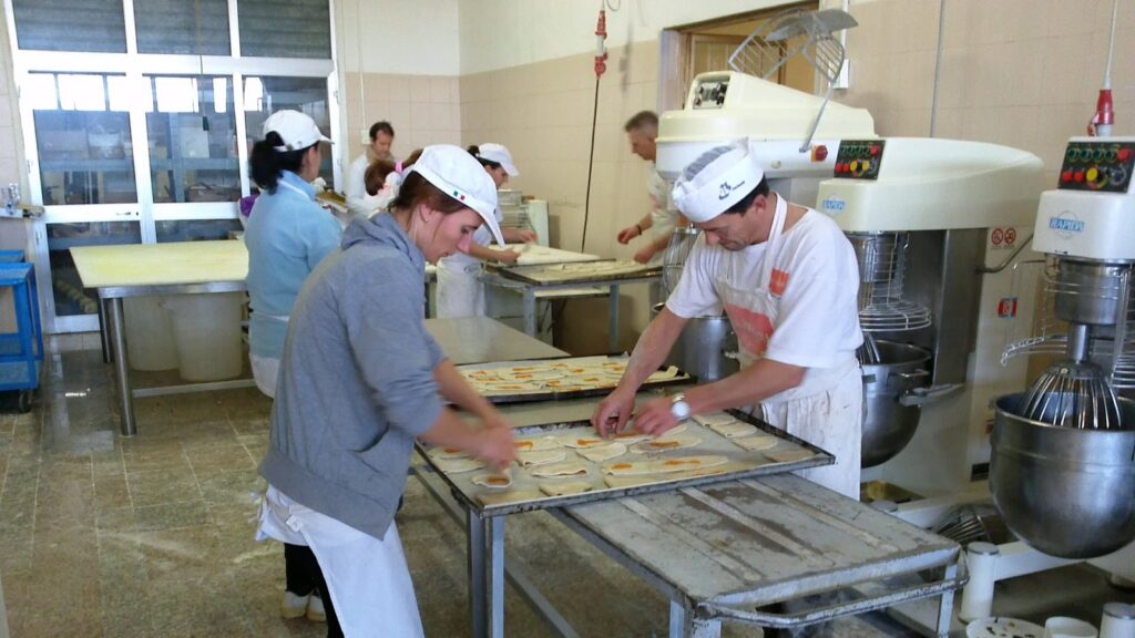 Wise hands shaping rolls, Bread loaves just out of the oven……