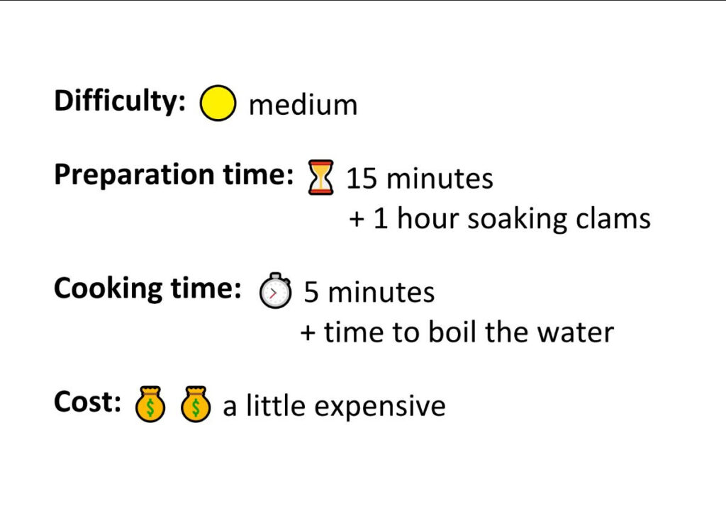 Time to cook! And to eat spaghetti with clams! (recipe below)
