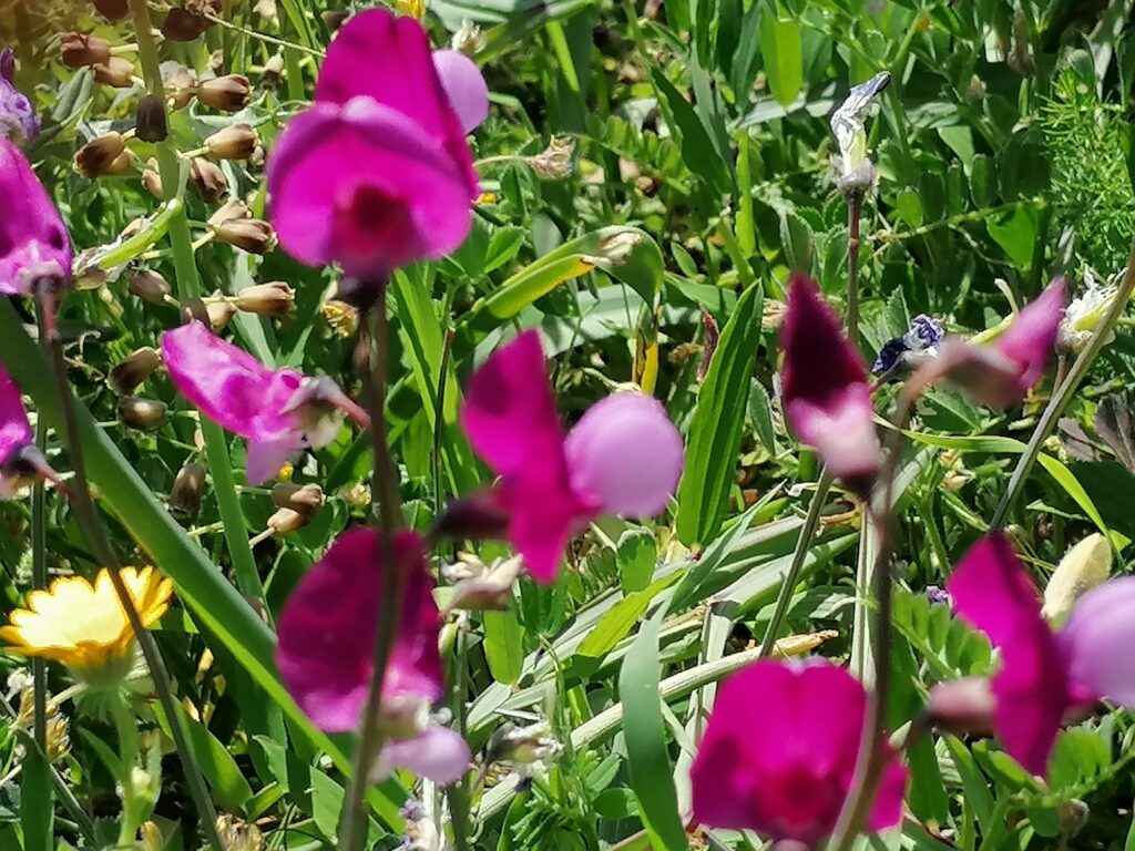 I picked mauve flowers, with lilac corollas, open and cheerful; the beautiful blue stars of borage; the red poppies. Marigolds, acacia flowers and many others are also edible.