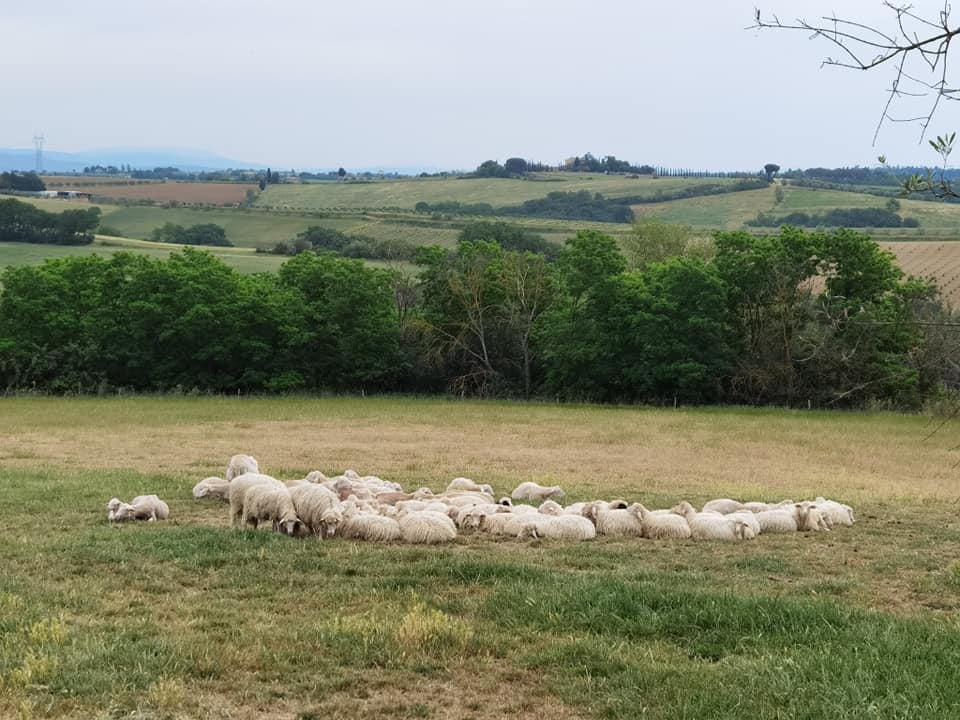 they raise hens that run on the lawn, graze the sheep on the hills of the Val d’Orcia,