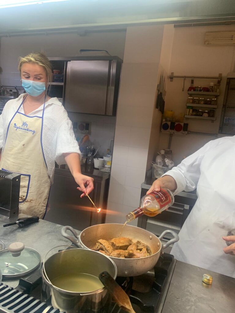 The last touch is the caramelization got lighting a fire in the pan with the help of a strong Brandy.