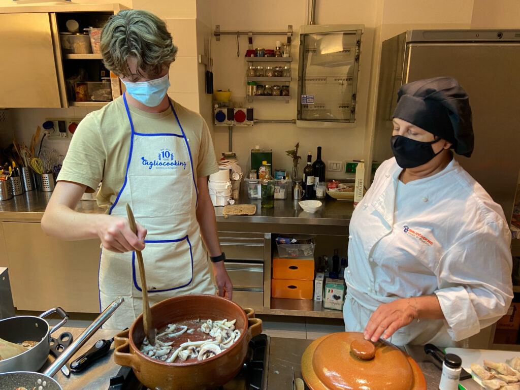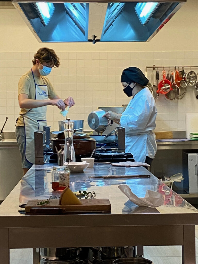 They chose a particular menu: Ravioli with scampi and zucchini, Sepia (cuttlefish) with artichokes ( i told them when they arrived: neither one is on season now… but fortunately I found good ingredients), Basil ice cream.