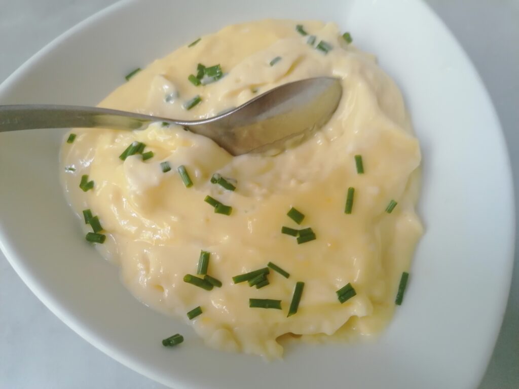 We have garnished our Aioli with fresh chopped chives.