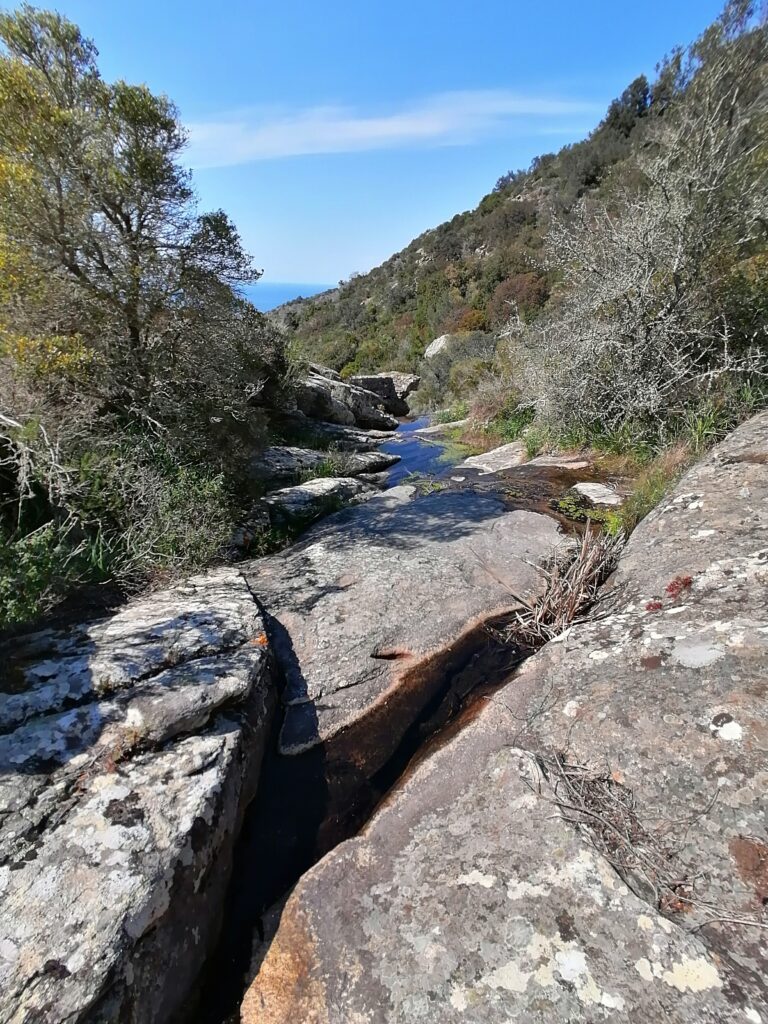 In the Valley del Dolce flows a stream, one of the most cheerful of those on the island, which also flows over large smooth granite rocks called “coti”.