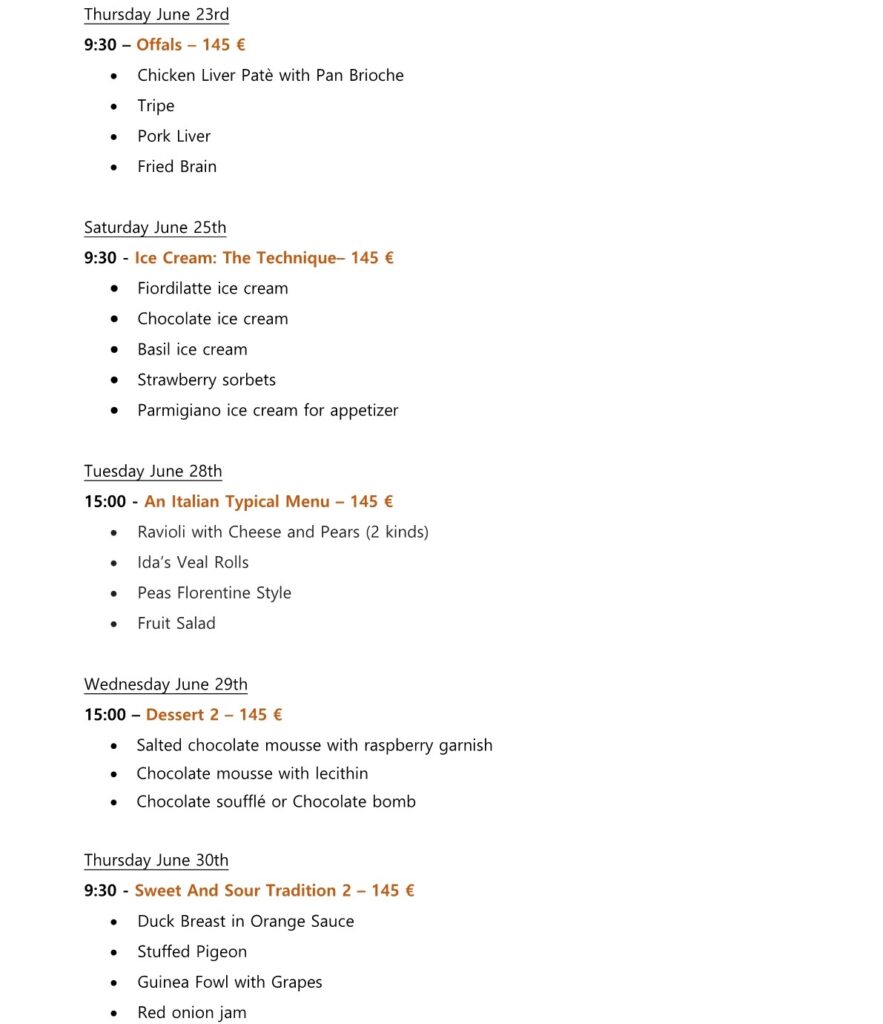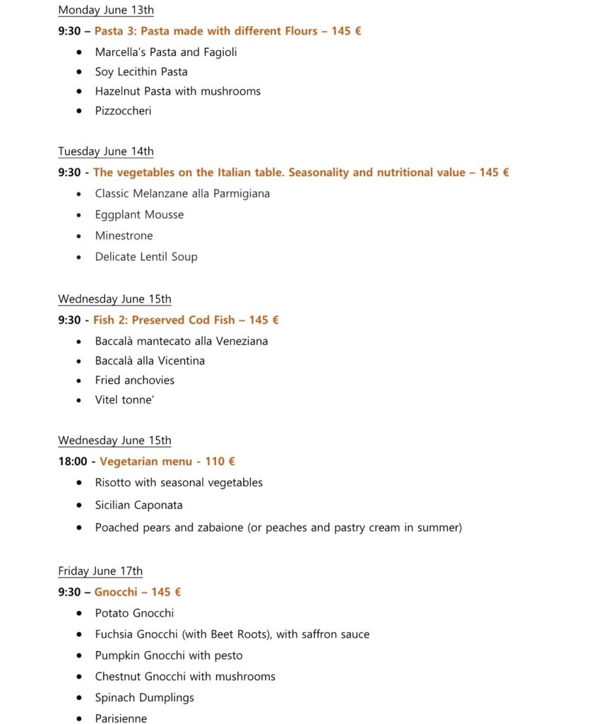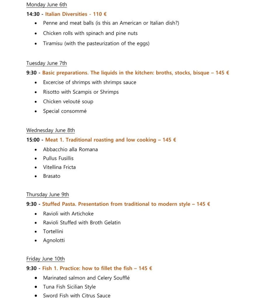 The lesson is completely hands-on and the Chef will guide you in the preparation of the dishes.
