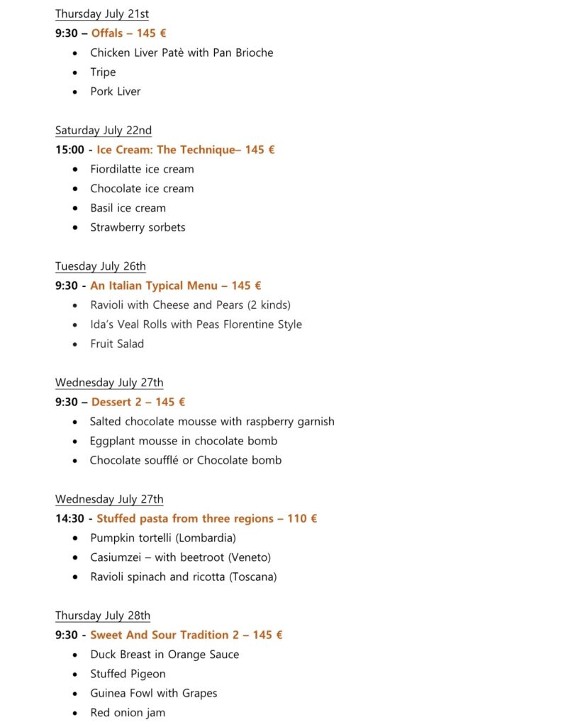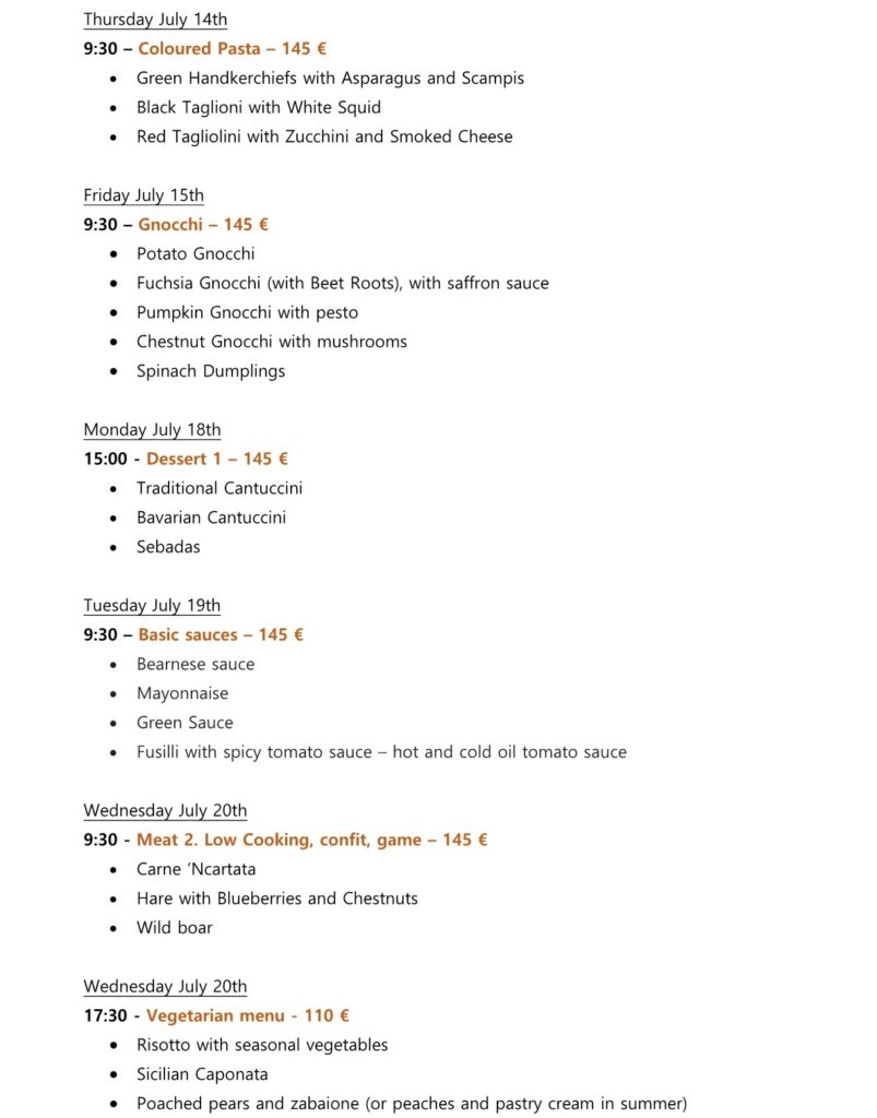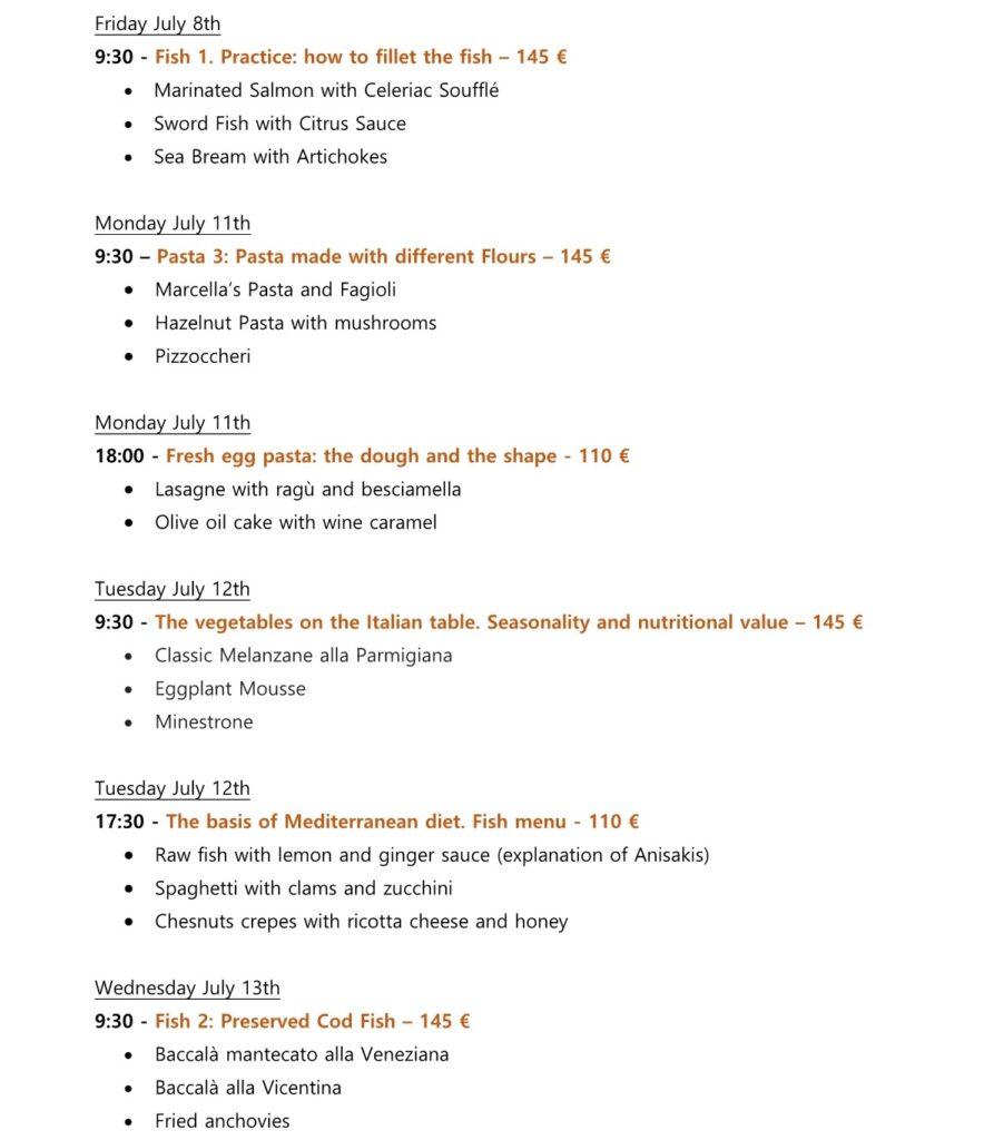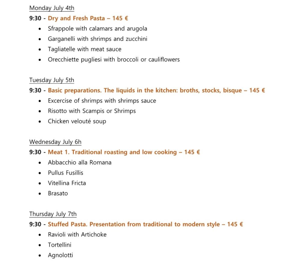 The lesson is completely hands-on and the Chef will guide you in the preparation of the dishes.