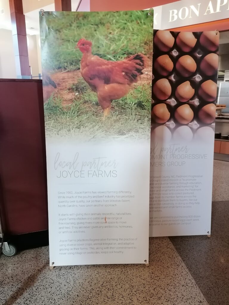 The Elon University uses eggs of “happy chickens”, living free on the field; milk and dairy from organic farms; a special scale that measures the weigh and the quantity of wasted product; there is a plant incubator for herbs and vegetables.