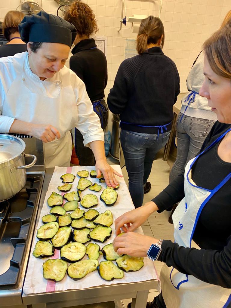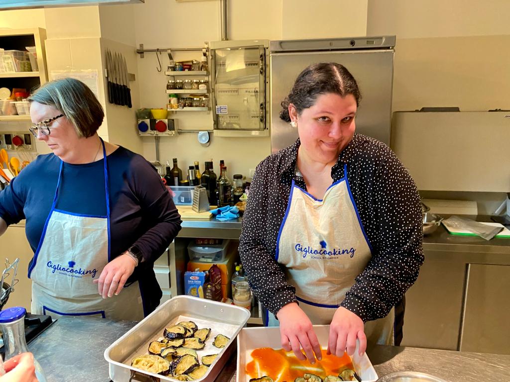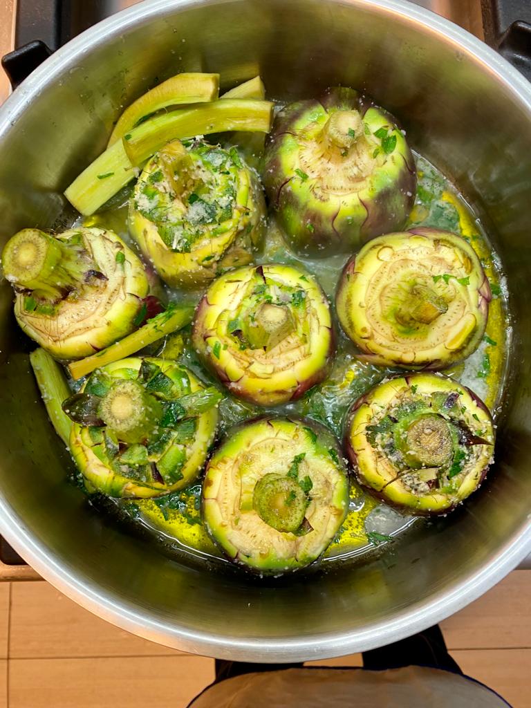 The menu? Stuffed artichokes, Ravioli with gorgonzola and pears with asparagus sauce, Eggplant parmigiana. Tiramisu.