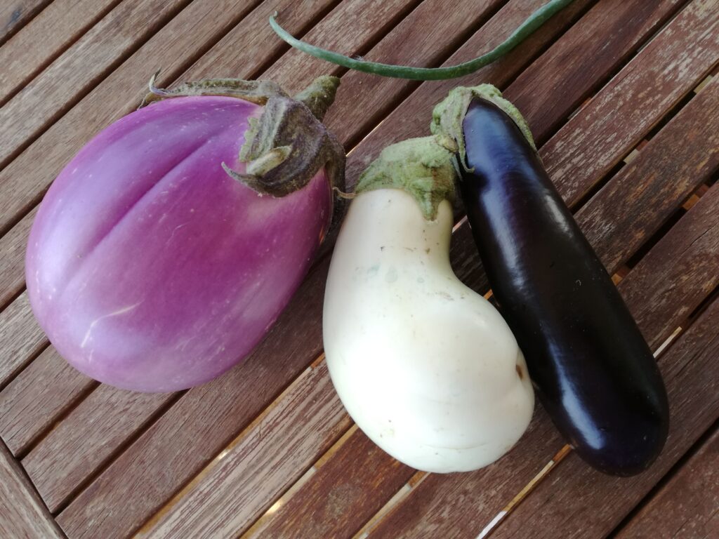 … the globular aubergine for the parmigiana; the bitterish long aubergine for the caponata, the violet aubergine, with its white, firm and sweet pulp to make cakes and mousses.