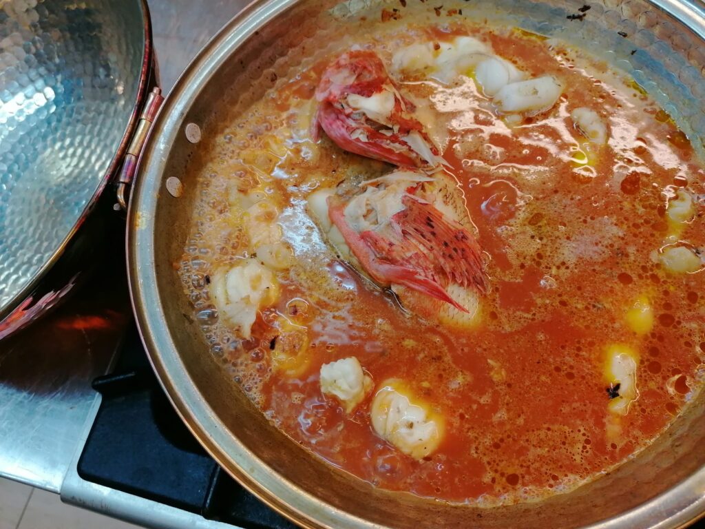 1 kg fish (2.2 Lb) (what the market offers between Sanpietro – John Dory -, scorpion fish, monkfish, red mullet: the more varieties of fish, crustaceans and molluscs, the better the result will be)