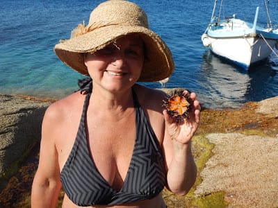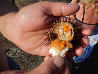 I like limpets, but what really attracts me are the sea urchins. To pick them, I plunge with a sea mask, I search for them among the sea weeds and in the cracks of the rocks.