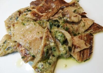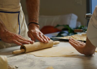 • Fresh Pasta First Courses: Tagliatelle with Artichokes – Crepes of Catherine de’ Medici – Testaroli with Pesto