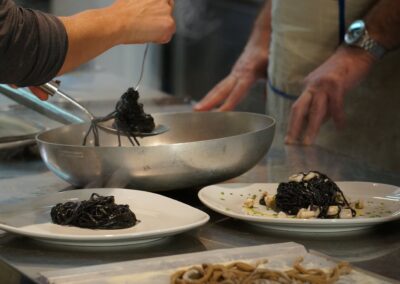 • Veneto: Cavei de strega (Black fresh pasta) – Baccalà Vicenza style with polenta – Zaleti (Corn cookies)